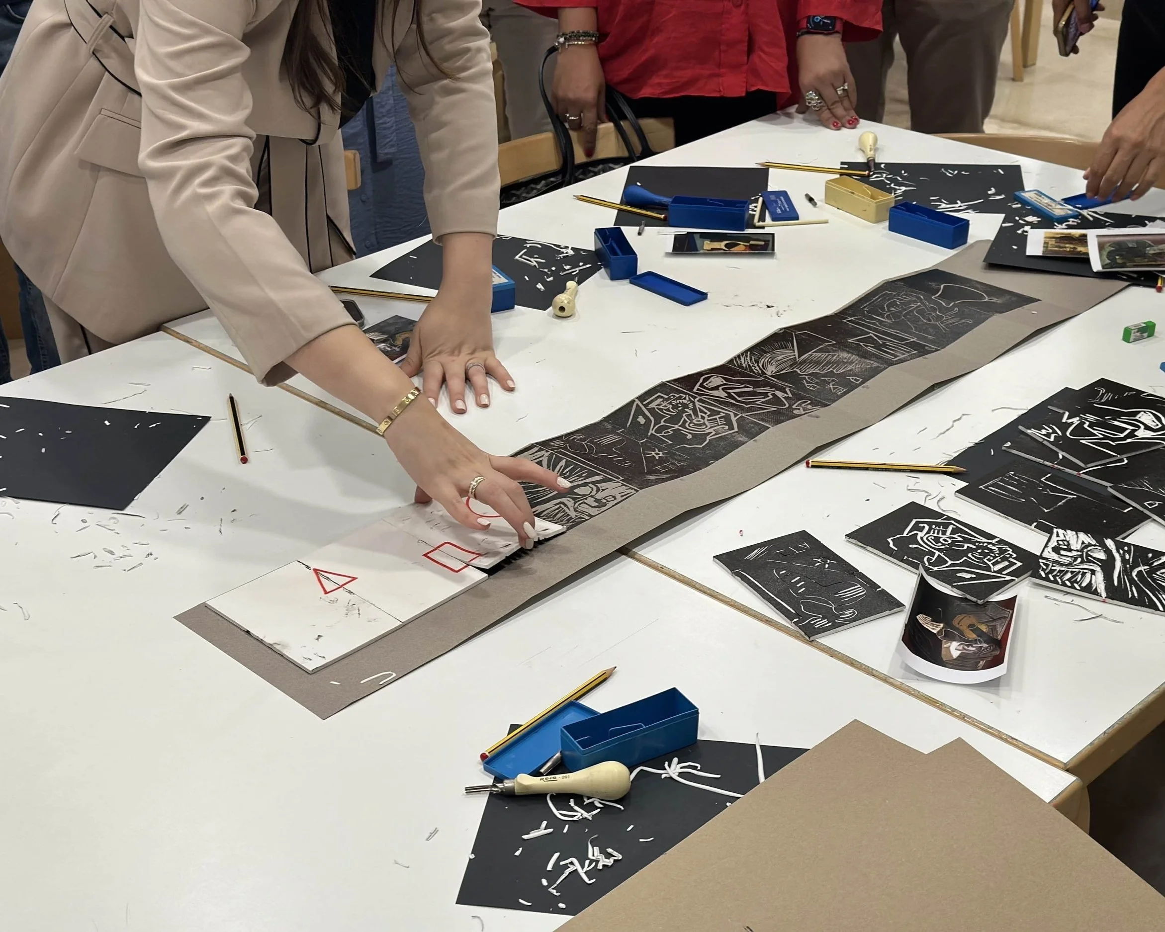 Taller de linograbado orientado a adultos, impartido y diseñado como parte del Departamento de Actividades Culturales y Educativas del Museo Picasso Málaga. En él, los participantes realizan un “cadáver exquisito”, es decir, una obra conjunta a partir de la combinación de los distintos trabajos individuales. El resultado es un formato acordeón que integra todas las planchas diseñadas por separado.
